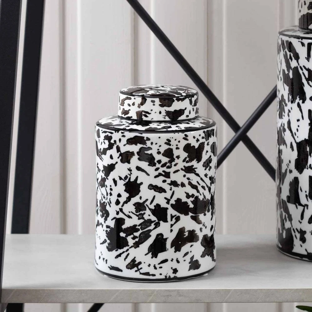 Introduce a splash of contemporary design with this striking, monochrome ginger jar. It features an abstract pattern in black and white to liven up your sideboard or dressing table. The glossy ceramic brings a luxe finish, while the removable lid offers functionality. An eye-catching addition to your ginger pot collection.