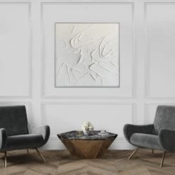 Appearing like an aerial view of the ocean meeting icy shores, this contemporary art piece will spark conversation. It’s a vibrant palette of crisp white and sapphire-blue with pops of pink and yellow. This abstract art will bring wild beauty to your home – it deserves a prominent place in your living room.