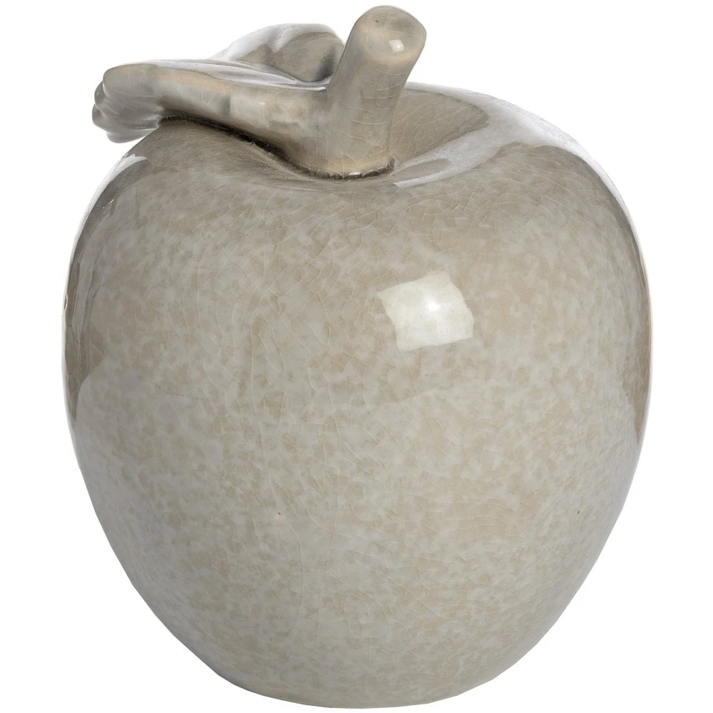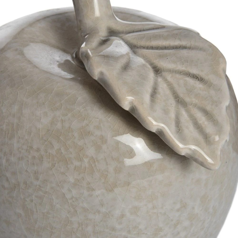 This ceramic apple ornament is a characterful piece for your shelf. Quirky yet chic, it comes in a neutral colour to suit most interiors. The crackle glaze finish adds charm, while the handcraftsmanship delivers superior quality. Use this decorative apple to create a unique display in your kitchen or dining room.