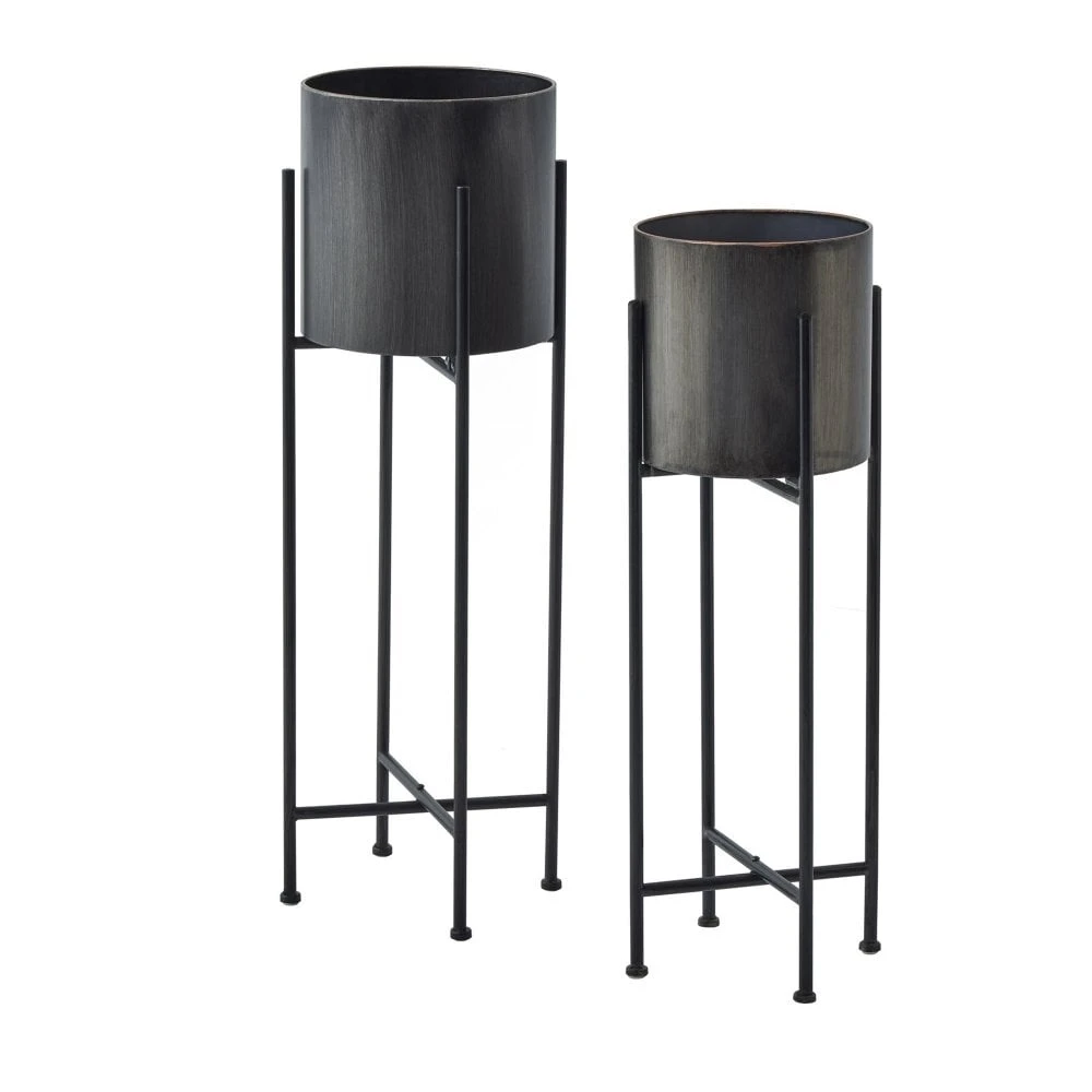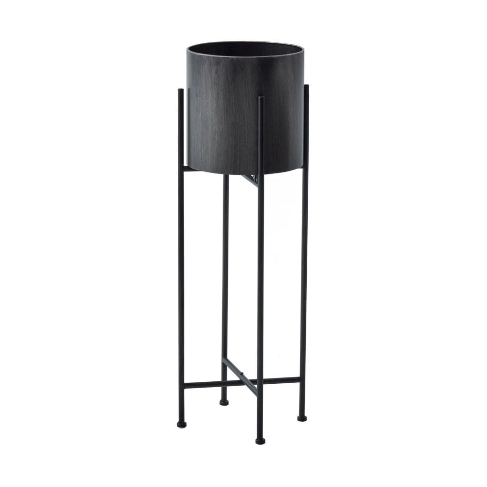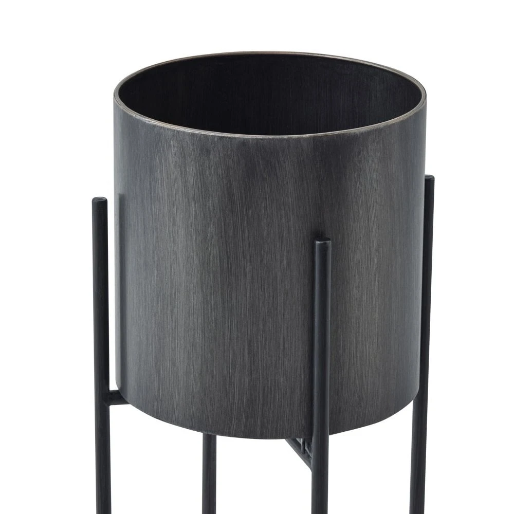 HI Large Gun Metal Grey Cylindrical Planter On Black Frame
